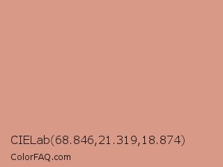 CIELab 68.846,21.319,18.874 Color is a light red color and the nearest color is My Pink #d69188. Hex code #d89987 and RGB value is rgb(216,153,135). In RGB color space, this color is composed of 85% red, 60% green, 53% blue, In CMYK color space, this color is composed of 0% cyan, 29% magenta, 38% yellow , 15% black , In HSL color space, this color has a hue angle of 13° , 51% saturation and 69% lightness.