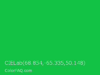 CIELab 68.854,-65.335,50.148 Color is a normal green color and the nearest color is Dark Pastel Green #03c03c. Hex code #12c245 and RGB value is rgb(18,194,69). In RGB color space, this color is composed of 7% red, 76% green, 27% blue, In CMYK color space, this color is composed of 91% cyan, 0% magenta, 64% yellow , 24% black , In HSL color space, this color has a hue angle of 137° , 83% saturation and 42% lightness.