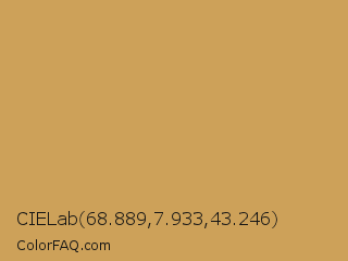 CIELab 68.889,7.933,43.246 Color is a normal orange color and the nearest color is Aztec Gold #c39953. Hex code #cda159 and RGB value is rgb(205,161,89). In RGB color space, this color is composed of 80% red, 63% green, 35% blue, In CMYK color space, this color is composed of 0% cyan, 21% magenta, 57% yellow , 20% black , In HSL color space, this color has a hue angle of 37° , 54% saturation and 58% lightness.