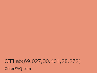 CIELab 69.027,30.401,28.272 Color is a light red color and the nearest color is Apricot #eb9373. Hex code #ea9277 and RGB value is rgb(234,146,119). In RGB color space, this color is composed of 92% red, 57% green, 47% blue, In CMYK color space, this color is composed of 0% cyan, 38% magenta, 49% yellow , 8% black , In HSL color space, this color has a hue angle of 14° , 73% saturation and 69% lightness.