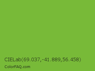 CIELab 69.037,-41.889,56.458 Color is a normal green color and the nearest color is Sushi #87ab39. Hex code #78ba38 and RGB value is rgb(120,186,56). In RGB color space, this color is composed of 47% red, 73% green, 22% blue, In CMYK color space, this color is composed of 35% cyan, 0% magenta, 70% yellow , 27% black , In HSL color space, this color has a hue angle of 90° , 54% saturation and 47% lightness.