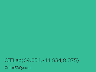 CIELab 69.054,-44.834,8.375 Color is a normal cyan color and the nearest color is Mountain Meadow #30ba8f. Hex code #35bd98 and RGB value is rgb(53,189,152). In RGB color space, this color is composed of 21% red, 74% green, 60% blue, In CMYK color space, this color is composed of 72% cyan, 0% magenta, 20% yellow , 26% black , In HSL color space, this color has a hue angle of 164° , 56% saturation and 47% lightness.