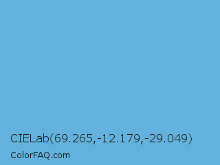 CIELab 69.265,-12.179,-29.049 Color is a light blue color and the nearest color is Blue Jeans #5dadec. Hex code #63b2dd and RGB value is rgb(99,178,221). In RGB color space, this color is composed of 39% red, 70% green, 87% blue, In CMYK color space, this color is composed of 55% cyan, 19% magenta, 0% yellow , 13% black , In HSL color space, this color has a hue angle of 201° , 64% saturation and 63% lightness.