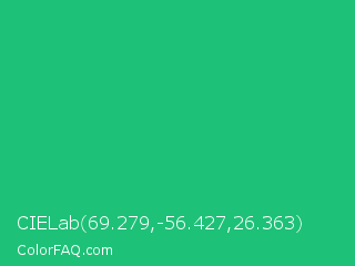 CIELab 69.279,-56.427,26.363 Color is a normal green color and the nearest color is Mountain Meadow Crayola #1ab385. Hex code #1dc177 and RGB value is rgb(29,193,119). In RGB color space, this color is composed of 11% red, 76% green, 47% blue, In CMYK color space, this color is composed of 85% cyan, 0% magenta, 38% yellow , 24% black , In HSL color space, this color has a hue angle of 153° , 74% saturation and 44% lightness.
