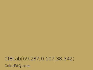 CIELab 69.287,0.107,38.342 Color is a normal orange color and the nearest color is Husk #b7a458. Hex code #c0a763 and RGB value is rgb(192,167,99). In RGB color space, this color is composed of 75% red, 65% green, 39% blue, In CMYK color space, this color is composed of 0% cyan, 13% magenta, 48% yellow , 25% black , In HSL color space, this color has a hue angle of 44° , 42% saturation and 57% lightness.