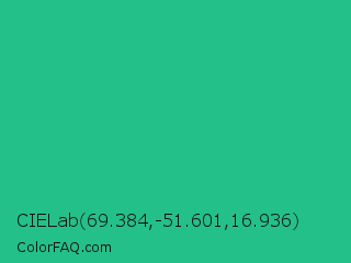 CIELab 69.384,-51.601,16.936 Color is a normal green color and the nearest color is Mountain Meadow #30ba8f. Hex code #24c089 and RGB value is rgb(36,192,137). In RGB color space, this color is composed of 14% red, 75% green, 54% blue, In CMYK color space, this color is composed of 81% cyan, 0% magenta, 29% yellow , 25% black , In HSL color space, this color has a hue angle of 159° , 68% saturation and 45% lightness.