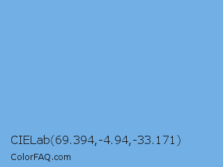 CIELab 69.394,-4.94,-33.171 Color is a light blue color and the nearest color is Aero #7cb9e8. Hex code #72afe5 and RGB value is rgb(114,175,229). In RGB color space, this color is composed of 45% red, 69% green, 90% blue, In CMYK color space, this color is composed of 50% cyan, 24% magenta, 0% yellow , 10% black , In HSL color space, this color has a hue angle of 208° , 69% saturation and 67% lightness.