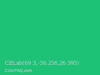 CIELab 69.3,-56.256,26.395 Color is a normal green color and the nearest color is Mountain Meadow Crayola #1ab385. Hex code #1fc177 and RGB value is rgb(31,193,119). In RGB color space, this color is composed of 12% red, 76% green, 47% blue, In CMYK color space, this color is composed of 84% cyan, 0% magenta, 38% yellow , 24% black , In HSL color space, this color has a hue angle of 153° , 72% saturation and 44% lightness.