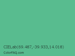 CIELab 69.487,-39.933,14.018 Color is a normal green color and the nearest color is Silver Tree #66b58f. Hex code #58bc8f and RGB value is rgb(88,188,143). In RGB color space, this color is composed of 35% red, 74% green, 56% blue, In CMYK color space, this color is composed of 53% cyan, 0% magenta, 24% yellow , 26% black , In HSL color space, this color has a hue angle of 153° , 43% saturation and 54% lightness.