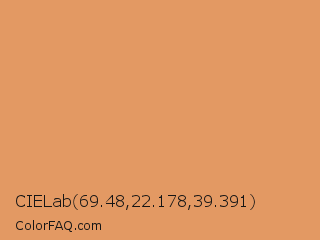 CIELab 69.48,22.178,39.391 Color is a light orange color and the nearest color is Di Serria #db995e. Hex code #e39963 and RGB value is rgb(227,153,99). In RGB color space, this color is composed of 89% red, 60% green, 39% blue, In CMYK color space, this color is composed of 0% cyan, 33% magenta, 56% yellow , 11% black , In HSL color space, this color has a hue angle of 25° , 70% saturation and 64% lightness.