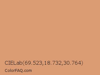 CIELab 69.523,18.732,30.764 Color is a light orange color and the nearest color is Whiskey #d59a6f. Hex code #db9c73 and RGB value is rgb(219,156,115). In RGB color space, this color is composed of 86% red, 61% green, 45% blue, In CMYK color space, this color is composed of 0% cyan, 29% magenta, 47% yellow , 14% black , In HSL color space, this color has a hue angle of 24° , 59% saturation and 65% lightness.