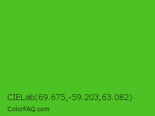 CIELab 69.675,-59.203,63.082 Color is a normal green color and the nearest color is Kelly Green #4cbb17. Hex code #4dc224 and RGB value is rgb(77,194,36). In RGB color space, this color is composed of 30% red, 76% green, 14% blue, In CMYK color space, this color is composed of 60% cyan, 0% magenta, 81% yellow , 24% black , In HSL color space, this color has a hue angle of 104° , 69% saturation and 45% lightness.