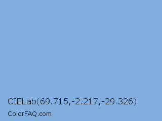 CIELab 69.715,-2.217,-29.326 Color is a light blue color and the nearest color is Light Cobalt Blue #88ace0. Hex code #82aedf and RGB value is rgb(130,174,223). In RGB color space, this color is composed of 51% red, 68% green, 87% blue, In CMYK color space, this color is composed of 42% cyan, 22% magenta, 0% yellow , 13% black , In HSL color space, this color has a hue angle of 212° , 59% saturation and 69% lightness.