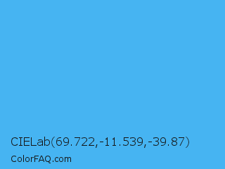 CIELab 69.722,-11.539,-39.87 Color is a light blue color and the nearest color is Picton Blue #45b1e8. Hex code #46b4f2 and RGB value is rgb(70,180,242). In RGB color space, this color is composed of 27% red, 71% green, 95% blue, In CMYK color space, this color is composed of 71% cyan, 26% magenta, 0% yellow , 5% black , In HSL color space, this color has a hue angle of 202° , 87% saturation and 61% lightness.