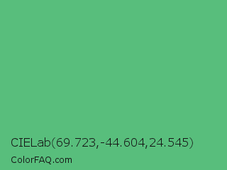 CIELab 69.723,-44.604,24.545 Color is a normal green color and the nearest color is Emerald #50c878. Hex code #58be7c and RGB value is rgb(88,190,124). In RGB color space, this color is composed of 35% red, 75% green, 49% blue, In CMYK color space, this color is composed of 54% cyan, 0% magenta, 35% yellow , 25% black , In HSL color space, this color has a hue angle of 141° , 44% saturation and 55% lightness.