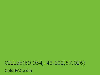 CIELab 69.954,-43.102,57.016 Color is a normal green color and the nearest color is Green RYB #66b032. Hex code #78bd39 and RGB value is rgb(120,189,57). In RGB color space, this color is composed of 47% red, 74% green, 22% blue, In CMYK color space, this color is composed of 37% cyan, 0% magenta, 70% yellow , 26% black , In HSL color space, this color has a hue angle of 91° , 54% saturation and 48% lightness.
