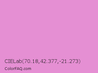 CIELab 70.18,42.377,-21.273 Color is a light magenta color and the nearest color is Light Orchid #e29cd2. Hex code #e58fd3 and RGB value is rgb(229,143,211). In RGB color space, this color is composed of 90% red, 56% green, 83% blue, In CMYK color space, this color is composed of 0% cyan, 38% magenta, 8% yellow , 10% black , In HSL color space, this color has a hue angle of 313° , 62% saturation and 73% lightness.