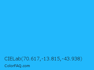 CIELab 70.617,-13.815,-43.938 Color is a normal blue color and the nearest color is Spiro Disco Ball #0fc0fc. Hex code #21b8fc and RGB value is rgb(33,184,252). In RGB color space, this color is composed of 13% red, 72% green, 99% blue, In CMYK color space, this color is composed of 87% cyan, 27% magenta, 0% yellow , 1% black , In HSL color space, this color has a hue angle of 199° , 97% saturation and 56% lightness.
