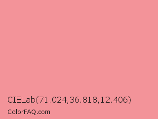 CIELab 71.024,36.818,12.406 Color is a light red color and the nearest color is Sea Pink #ed989e. Hex code #f39399 and RGB value is rgb(243,147,153). In RGB color space, this color is composed of 95% red, 58% green, 60% blue, In CMYK color space, this color is composed of 0% cyan, 40% magenta, 37% yellow , 5% black , In HSL color space, this color has a hue angle of 356° , 80% saturation and 76% lightness.