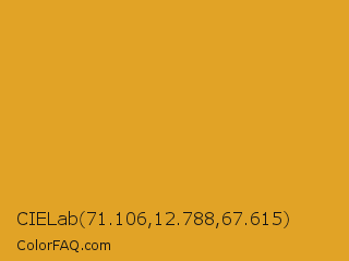 CIELab 71.106,12.788,67.615 Color is a normal orange color and the nearest color is Golden Grass #daa520. Hex code #e1a326 and RGB value is rgb(225,163,38). In RGB color space, this color is composed of 88% red, 64% green, 15% blue, In CMYK color space, this color is composed of 0% cyan, 28% magenta, 83% yellow , 12% black , In HSL color space, this color has a hue angle of 40° , 76% saturation and 52% lightness.