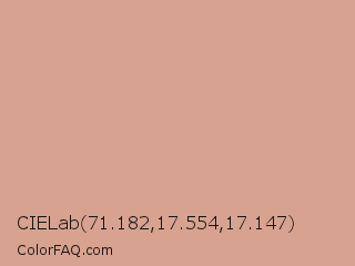 CIELab 71.182,17.554,17.147 Color is a light color and the nearest color is Petite Orchid #db9690. Hex code #d8a290 and RGB value is rgb(216,162,144). In RGB color space, this color is composed of 85% red, 64% green, 56% blue, In CMYK color space, this color is composed of 0% cyan, 25% magenta, 33% yellow , 15% black , In HSL color space, this color has a hue angle of 15° , 48% saturation and 71% lightness.