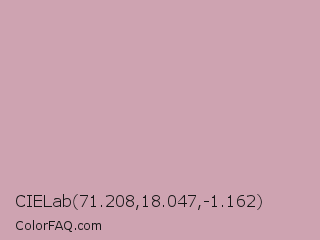 CIELab 71.208,18.047,-1.162 Color is a light rose color and the nearest color is Careys Pink #d29eaa. Hex code #cea3b1 and RGB value is rgb(206,163,177). In RGB color space, this color is composed of 81% red, 64% green, 69% blue, In CMYK color space, this color is composed of 0% cyan, 21% magenta, 14% yellow , 19% black , In HSL color space, this color has a hue angle of 340° , 30% saturation and 72% lightness.