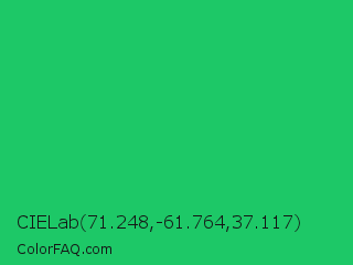 CIELab 71.248,-61.764,37.117 Color is a normal green color and the nearest color is Green Crayola #1cac78. Hex code #1dc867 and RGB value is rgb(29,200,103). In RGB color space, this color is composed of 11% red, 78% green, 40% blue, In CMYK color space, this color is composed of 86% cyan, 0% magenta, 49% yellow , 22% black , In HSL color space, this color has a hue angle of 146° , 75% saturation and 45% lightness.