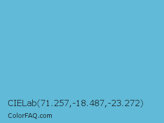 CIELab 71.257,-18.487,-23.272 Color is a light blue color and the nearest color is Viking #64ccdb. Hex code #60bad8 and RGB value is rgb(96,186,216). In RGB color space, this color is composed of 38% red, 73% green, 85% blue, In CMYK color space, this color is composed of 56% cyan, 14% magenta, 0% yellow , 15% black , In HSL color space, this color has a hue angle of 195° , 61% saturation and 61% lightness.