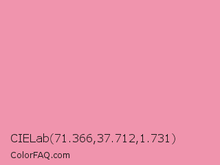 CIELab 71.366,37.712,1.731 Color is a light rose color and the nearest color is Mauvelous #f091a9. Hex code #f094ad and RGB value is rgb(240,148,173). In RGB color space, this color is composed of 94% red, 58% green, 68% blue, In CMYK color space, this color is composed of 0% cyan, 38% magenta, 28% yellow , 6% black , In HSL color space, this color has a hue angle of 344° , 75% saturation and 76% lightness.