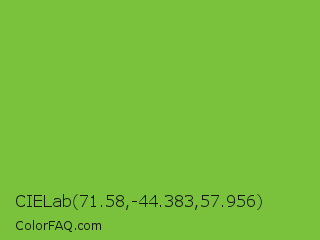 CIELab 71.58,-44.383,57.956 Color is a normal green color and the nearest color is Sushi #87ab39. Hex code #7ac23b and RGB value is rgb(122,194,59). In RGB color space, this color is composed of 48% red, 76% green, 23% blue, In CMYK color space, this color is composed of 37% cyan, 0% magenta, 70% yellow , 24% black , In HSL color space, this color has a hue angle of 92° , 53% saturation and 50% lightness.