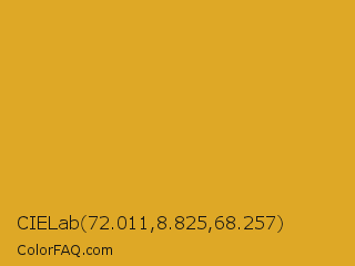 CIELab 72.011,8.825,68.257 Color is a normal orange color and the nearest color is Urobilin #e1ad21. Hex code #dea826 and RGB value is rgb(222,168,38). In RGB color space, this color is composed of 87% red, 66% green, 15% blue, In CMYK color space, this color is composed of 0% cyan, 24% magenta, 83% yellow , 13% black , In HSL color space, this color has a hue angle of 42° , 74% saturation and 51% lightness.