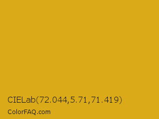 CIELab 72.044,5.71,71.419 Color is a normal orange color and the nearest color is Golden Grass #daa520. Hex code #daaa19 and RGB value is rgb(218,170,25). In RGB color space, this color is composed of 85% red, 67% green, 10% blue, In CMYK color space, this color is composed of 0% cyan, 22% magenta, 89% yellow , 15% black , In HSL color space, this color has a hue angle of 45° , 79% saturation and 48% lightness.