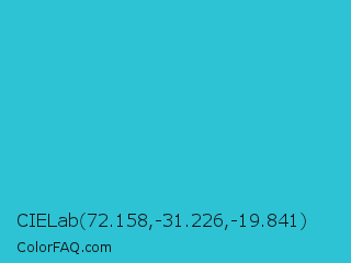 CIELab 72.158,-31.226,-19.841 Color is a normal cyan color and the nearest color is Scooter #2ebfd4. Hex code #2dc2d4 and RGB value is rgb(45,194,212). In RGB color space, this color is composed of 18% red, 76% green, 83% blue, In CMYK color space, this color is composed of 79% cyan, 8% magenta, 0% yellow , 17% black , In HSL color space, this color has a hue angle of 186° , 66% saturation and 50% lightness.