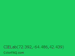 CIELab 72.392,-64.486,42.439 Color is a normal green color and the nearest color is Malachite #0bda51. Hex code #1bcc5f and RGB value is rgb(27,204,95). In RGB color space, this color is composed of 11% red, 80% green, 37% blue, In CMYK color space, this color is composed of 87% cyan, 0% magenta, 53% yellow , 20% black , In HSL color space, this color has a hue angle of 143° , 77% saturation and 45% lightness.