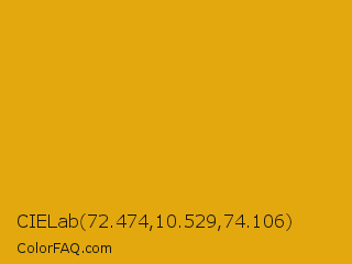 CIELab 72.474,10.529,74.106 Color is a normal orange color and the nearest color is Galliano #dcb20c. Hex code #e3a80e and RGB value is rgb(227,168,14). In RGB color space, this color is composed of 89% red, 66% green, 5% blue, In CMYK color space, this color is composed of 0% cyan, 26% magenta, 94% yellow , 11% black , In HSL color space, this color has a hue angle of 43° , 88% saturation and 47% lightness.