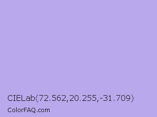 CIELab 72.562,20.255,-31.709 Color is a light indigo color and the nearest color is Biloba Flower #b2a1ea. Hex code #baa8ec and RGB value is rgb(186,168,236). In RGB color space, this color is composed of 73% red, 66% green, 93% blue, In CMYK color space, this color is composed of 21% cyan, 29% magenta, 0% yellow , 7% black , In HSL color space, this color has a hue angle of 256° , 64% saturation and 79% lightness.