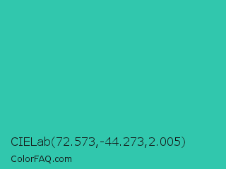 CIELab 72.573,-44.273,2.005 Color is a normal cyan color and the nearest color is Puerto Rico #3fc1aa. Hex code #31c7ad and RGB value is rgb(49,199,173). In RGB color space, this color is composed of 19% red, 78% green, 68% blue, In CMYK color space, this color is composed of 75% cyan, 0% magenta, 13% yellow , 22% black , In HSL color space, this color has a hue angle of 170° , 60% saturation and 49% lightness.