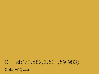CIELab 72.582,3.631,59.983 Color is a normal orange color and the nearest color is Gold Metallic #d4af37. Hex code #d6ad3e and RGB value is rgb(214,173,62). In RGB color space, this color is composed of 84% red, 68% green, 24% blue, In CMYK color space, this color is composed of 0% cyan, 19% magenta, 71% yellow , 16% black , In HSL color space, this color has a hue angle of 44° , 65% saturation and 54% lightness.