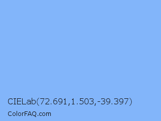 CIELab 72.691,1.503,-39.397 Color is a light blue color and the nearest color is French Sky Blue #77b5fe. Hex code #82b5fa and RGB value is rgb(130,181,250). In RGB color space, this color is composed of 51% red, 71% green, 98% blue, In CMYK color space, this color is composed of 48% cyan, 28% magenta, 0% yellow , 2% black , In HSL color space, this color has a hue angle of 215° , 92% saturation and 75% lightness.