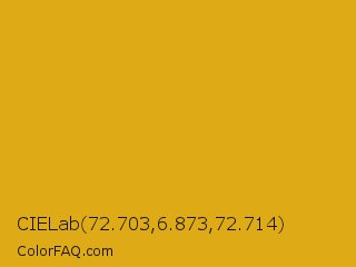 CIELab 72.703,6.873,72.714 Color is a normal orange color and the nearest color is Urobilin #e1ad21. Hex code #deab16 and RGB value is rgb(222,171,22). In RGB color space, this color is composed of 87% red, 67% green, 9% blue, In CMYK color space, this color is composed of 0% cyan, 23% magenta, 90% yellow , 13% black , In HSL color space, this color has a hue angle of 45° , 82% saturation and 48% lightness.