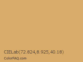 CIELab 72.824,8.925,40.18 Color is a light orange color and the nearest color is Earth Yellow #e1a95f. Hex code #d9ab69 and RGB value is rgb(217,171,105). In RGB color space, this color is composed of 85% red, 67% green, 41% blue, In CMYK color space, this color is composed of 0% cyan, 21% magenta, 52% yellow , 15% black , In HSL color space, this color has a hue angle of 35° , 60% saturation and 63% lightness.