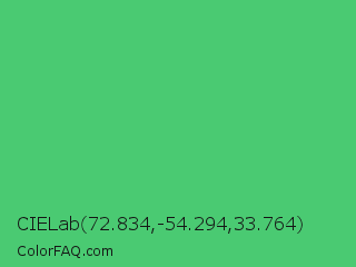CIELab 72.834,-54.294,33.764 Color is a normal green color and the nearest color is Emerald #50c878. Hex code #4aca72 and RGB value is rgb(74,202,114). In RGB color space, this color is composed of 29% red, 79% green, 45% blue, In CMYK color space, this color is composed of 63% cyan, 0% magenta, 44% yellow , 21% black , In HSL color space, this color has a hue angle of 139° , 55% saturation and 54% lightness.