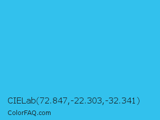 CIELab 72.847,-22.303,-32.341 Color is a normal blue color and the nearest color is Picton Blue #45b1e8. Hex code #32c1ed and RGB value is rgb(50,193,237). In RGB color space, this color is composed of 20% red, 76% green, 93% blue, In CMYK color space, this color is composed of 79% cyan, 19% magenta, 0% yellow , 7% black , In HSL color space, this color has a hue angle of 194° , 84% saturation and 56% lightness.