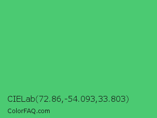 CIELab 72.86,-54.093,33.803 Color is a normal green color and the nearest color is Emerald #50c878. Hex code #4bca72 and RGB value is rgb(75,202,114). In RGB color space, this color is composed of 29% red, 79% green, 45% blue, In CMYK color space, this color is composed of 63% cyan, 0% magenta, 44% yellow , 21% black , In HSL color space, this color has a hue angle of 138° , 55% saturation and 54% lightness.