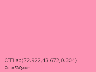 CIELab 72.922,43.672,0.304 Color is a light rose color and the nearest color is Schauss Pink #ff91af. Hex code #fd93b4 and RGB value is rgb(253,147,180). In RGB color space, this color is composed of 99% red, 58% green, 71% blue, In CMYK color space, this color is composed of 0% cyan, 42% magenta, 29% yellow , 1% black , In HSL color space, this color has a hue angle of 341° , 96% saturation and 78% lightness.