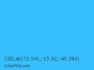 CIELab 72.941,-15.92,-40.284 Color is a normal blue color and the nearest color is Picton Blue #45b1e8. Hex code #36bffc and RGB value is rgb(54,191,252). In RGB color space, this color is composed of 21% red, 75% green, 99% blue, In CMYK color space, this color is composed of 79% cyan, 24% magenta, 0% yellow , 1% black , In HSL color space, this color has a hue angle of 198° , 97% saturation and 60% lightness.