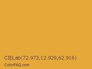 CIELab 72.973,12.929,62.916 Color is a normal orange color and the nearest color is Tulip Tree #eab33b. Hex code #e6a839 and RGB value is rgb(230,168,57). In RGB color space, this color is composed of 90% red, 66% green, 22% blue, In CMYK color space, this color is composed of 0% cyan, 27% magenta, 75% yellow , 10% black , In HSL color space, this color has a hue angle of 38° , 78% saturation and 56% lightness.