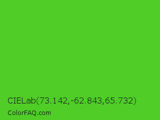 CIELab 73.142,-62.843,65.732 Color is a normal green color and the nearest color is Harlequin Green #46cb18. Hex code #4dcd26 and RGB value is rgb(77,205,38). In RGB color space, this color is composed of 30% red, 80% green, 15% blue, In CMYK color space, this color is composed of 62% cyan, 0% magenta, 81% yellow , 20% black , In HSL color space, this color has a hue angle of 106° , 69% saturation and 48% lightness.