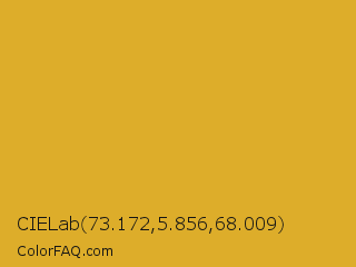 CIELab 73.172,5.856,68.009 Color is a normal orange color and the nearest color is Urobilin #e1ad21. Hex code #ddad2a and RGB value is rgb(221,173,42). In RGB color space, this color is composed of 87% red, 68% green, 16% blue, In CMYK color space, this color is composed of 0% cyan, 22% magenta, 81% yellow , 13% black , In HSL color space, this color has a hue angle of 44° , 72% saturation and 52% lightness.