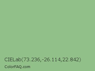 CIELab 73.236,-26.114,22.842 Color is a light green color and the nearest color is Dark Sea Green #8fbc8f. Hex code #91c089 and RGB value is rgb(145,192,137). In RGB color space, this color is composed of 57% red, 75% green, 54% blue, In CMYK color space, this color is composed of 24% cyan, 0% magenta, 29% yellow , 25% black , In HSL color space, this color has a hue angle of 111° , 30% saturation and 65% lightness.